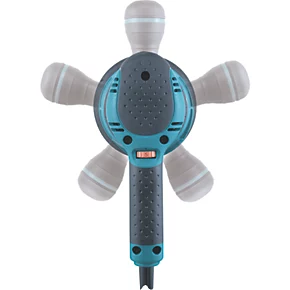 Random orbit sander with adjustable, removable front handle and variable electronic speed control. Supplied with front handle, dust bag and 125mm abrasive disc.
